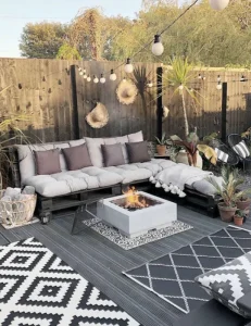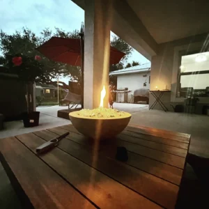 A decorative fire bowl introduces a quiet kind of magic. The gentle flicker, the movement of light, the way people instinctively gather around it—it becomes less of a feature and more of a feeling.