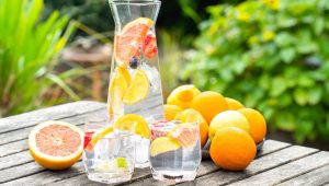 Fresh citrus resting in a glass of sparkling water